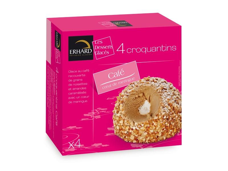 Glace café, cœur de meringue, éclats d'amandes et noisettes caramélisées.
