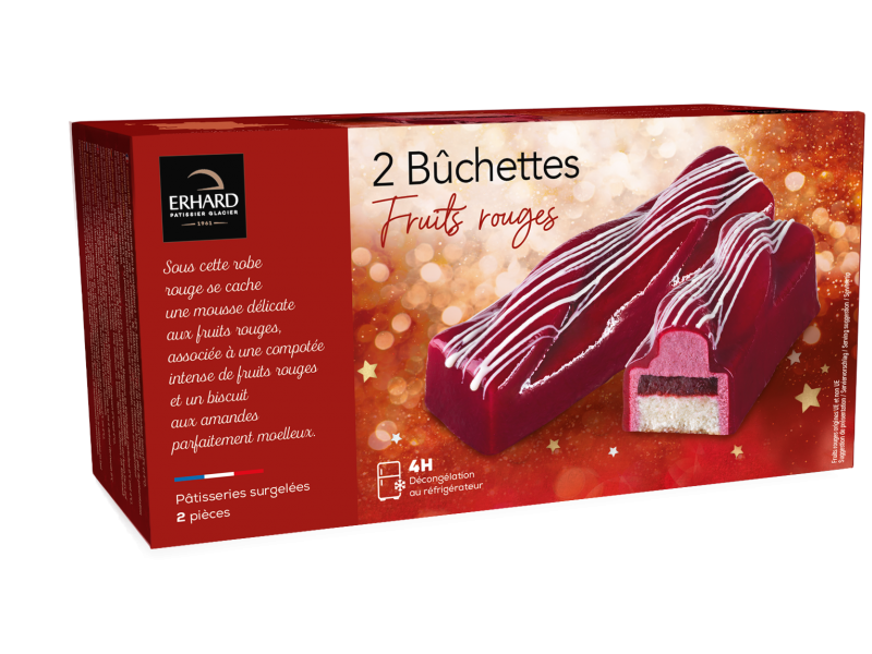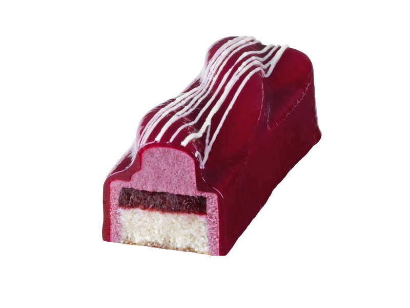 Mousse fruits rouges, compotée de fruits rouges, biscuit aux amandes - surgelées.