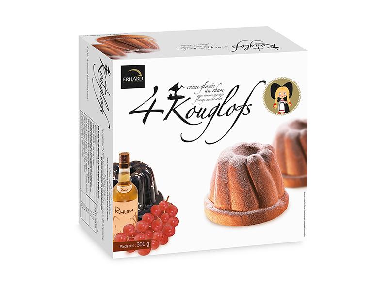 Spécialités individuelles composées de crème glacée à l'eau de vie de marc de raisin Gewurztraminer avec raisins secs macérés 92,4%, flocage au chocolat…