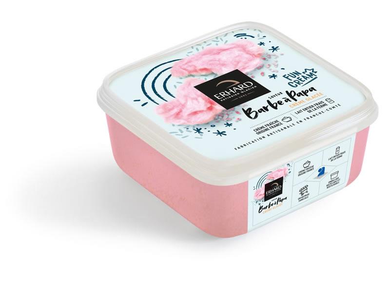 Crème glacée saveur crème brûlée parsemée de cassonade.