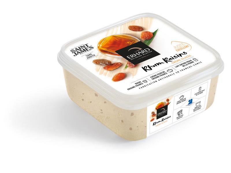 Crème glacée au rhum Saint James® avec des raisins macérés au rhum.