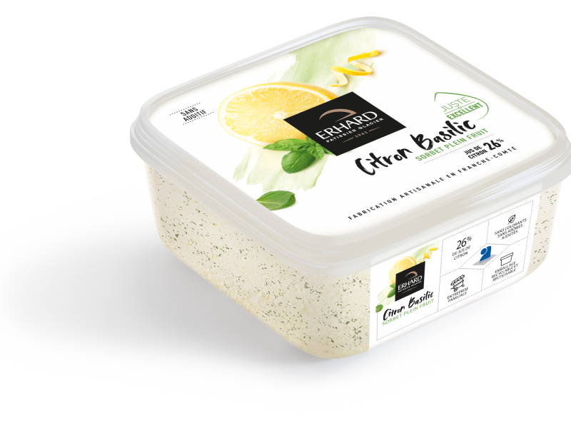 Entremets glacé composé de crème glacée à l'eau de vie marc de Gewurztraminer 90% avec raisins macérés à l'eau de vie marc de Gewurztraminer, sachet…