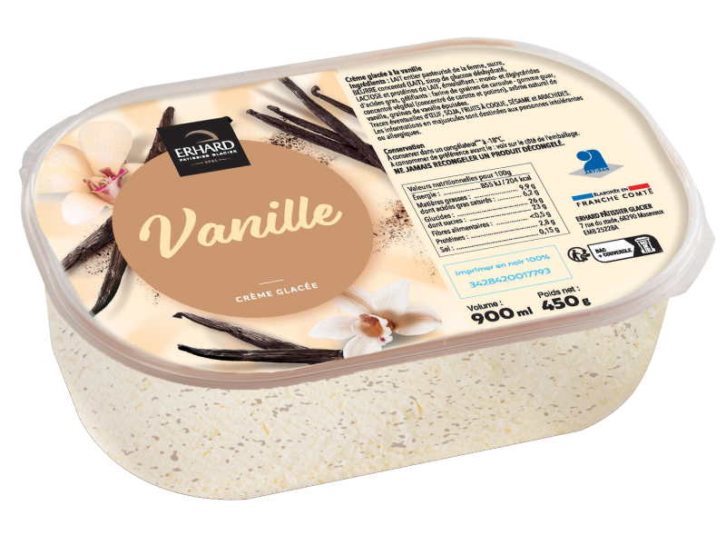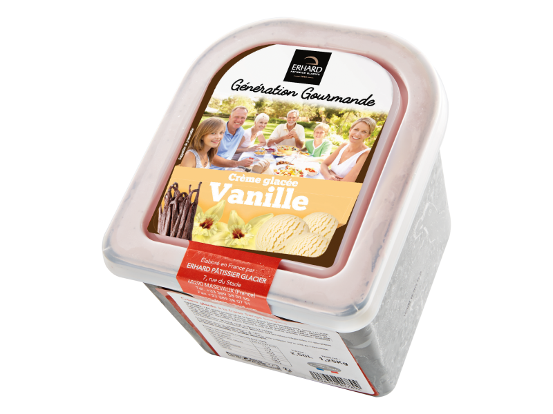 Entremets glacé composé de crème glacée à la vanille (63%) entourée de pâte de riz sucrée cuite (36%) - Surgelé.